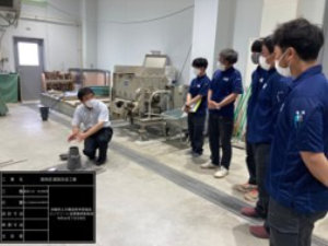 コンクリートを学びたい学生(東北大学)に対して現場見学会を開催しました。大学では体験できない現場でのコンクリートの仕組みを説明しました。